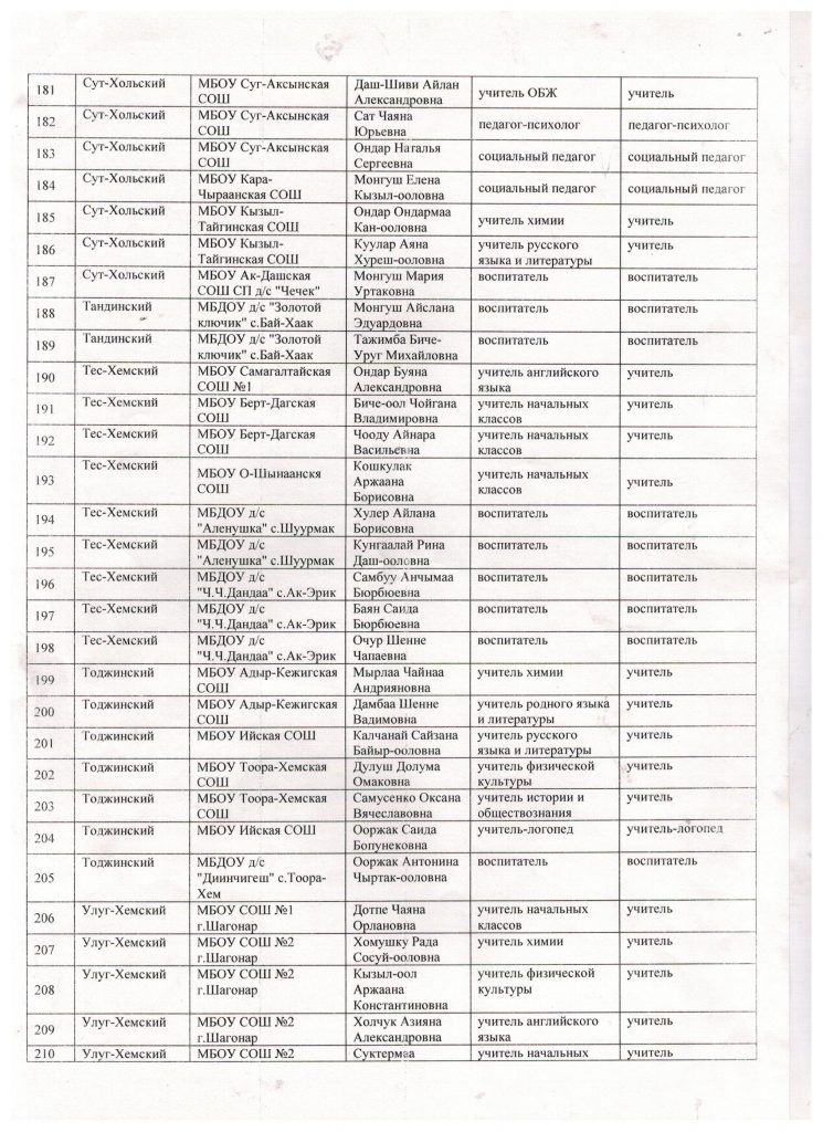 Место работы: Муниципальное бюджетное дошкольное образовательное учреждение детский сад «Ч.Ч.Дандаа» с.Ак-Эрик Тес-Хемского кожууна.